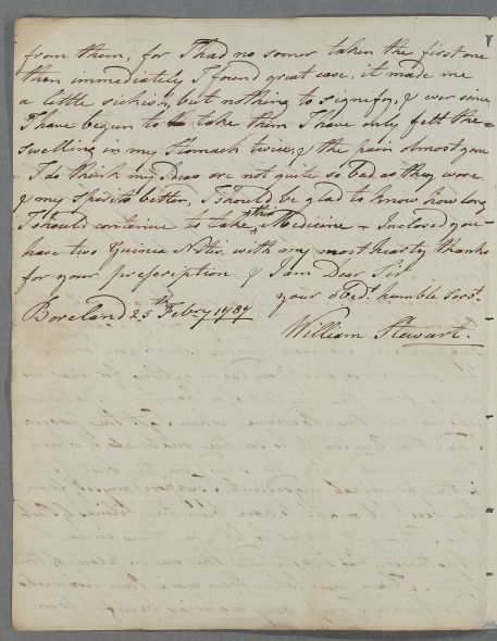 [ID:2990] From: Mr William Stewart (of Shambellie (Shambelly)) / To: Dr William Cullen (Professor Cullen) / Regarding: Mr William Stewart (of Shambellie (Shambelly)) (Patient) / 25 February 1787 / (Incoming)