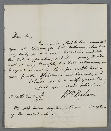 | Summary | Letter from William Ingham, concerning the case of Miss Wilson. |