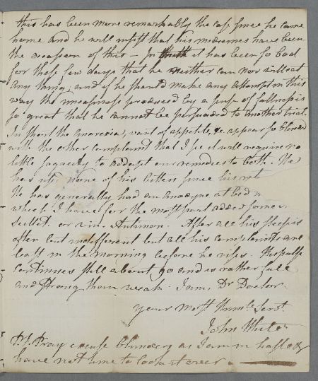 | Summary | Letter from John White, concerning the case of Mr Bisset. |
