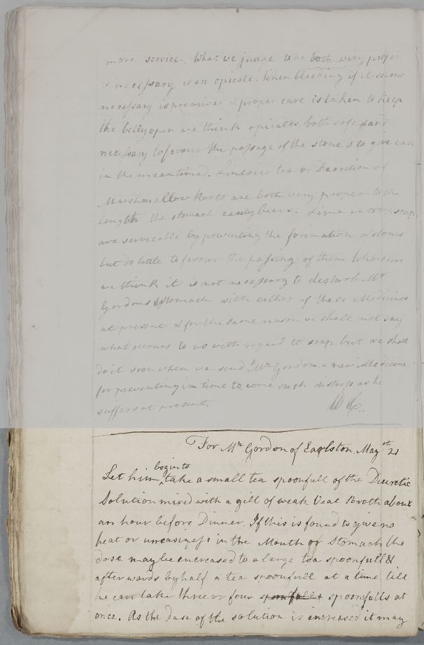 [ID:30] From: Dr William Cullen (Professor Cullen) / To: [ADDRESSEE UNKNOWN] / Regarding: Mr Gordon (of Earlston) (Patient) / 21 May 1765? / (Outgoing)