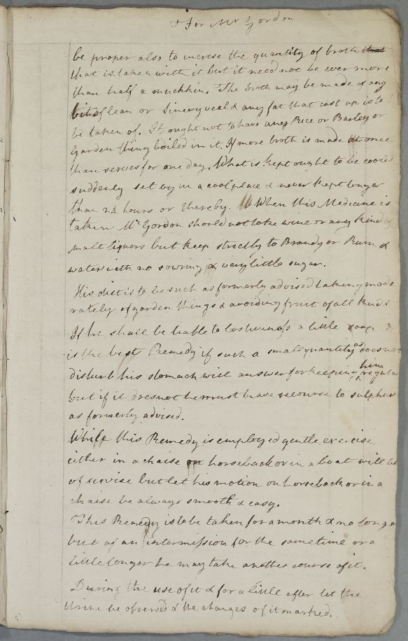 | Summary | Reply, 'For Mr Gordon of Earlston', giving more detailed directions on his diet. |