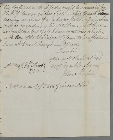 [ID:3007] From: Dr John Mudie (Moodie) / To: Dr William Cullen (Professor Cullen) / Regarding: Mr William? Christie? (Patient) / 29 March 1787 / (Incoming)