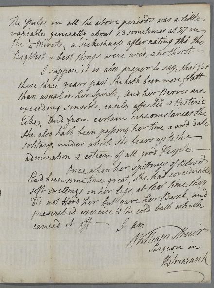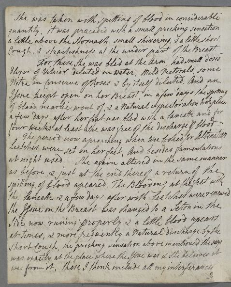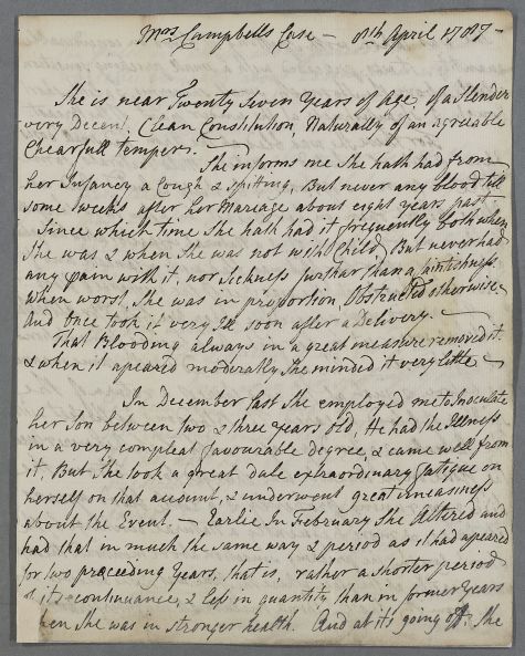 Case of Mrs Campbell who has a long history of a cough and spitting blood. She became particularly fatigued caring for her child who was successfully inoculated by her surgeon Mr Muir. |
