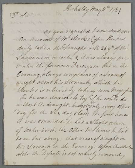 [ID:3030] From: Mr Andrew Whyte / To: Dr William Cullen (Professor Cullen) / Regarding: Mr William Stark (Patient) / 11 May 1787 / (Incoming)