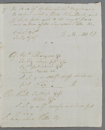| Summary | Letter from Alexander Monro and 'M. D.', giving directions for Count Lockhart. Contains a recipe for Miss Lockhart. |