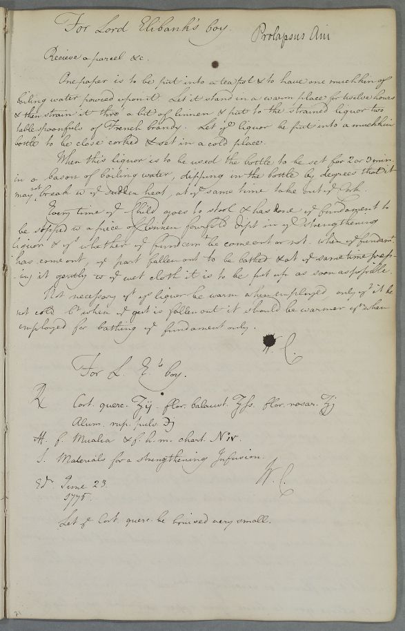Case of Lord Elibank's baby boy with a prolapse of the anus. |
