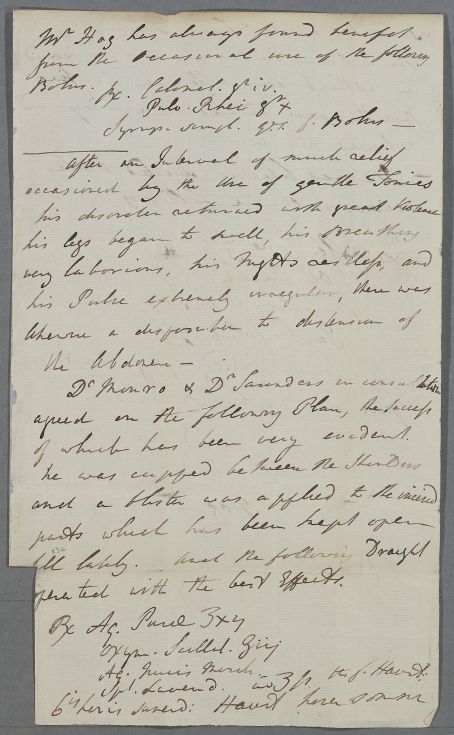 [ID:3199] From: Dr William Saunders / To: Dr William Cullen (Professor Cullen) / Regarding: Mr Roger Hog (junior) (Patient) / 3 August 1787 / (Incoming)