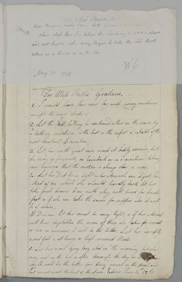 [ID:32] From: Dr William Cullen (Professor Cullen) / To: [ADDRESSEE UNKNOWN] / Regarding: Miss Bettie Graham (Patient) / 4 June 1765 / (Outgoing)