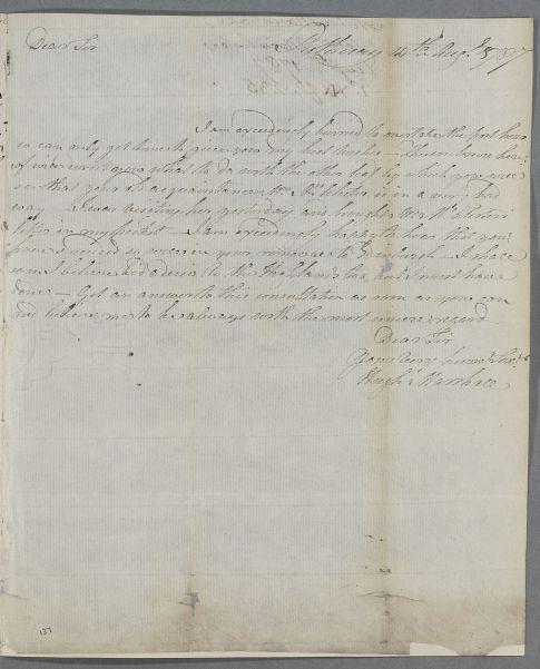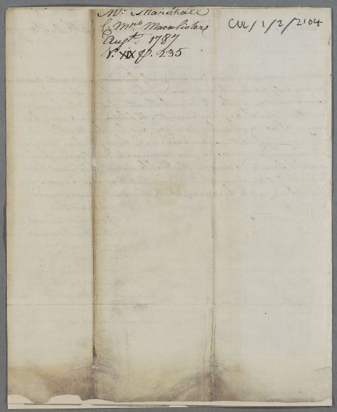 [ID:3204] From: Dr Hugh Marshall / To: Dr William Cullen (Professor Cullen) / Regarding: Mrs McAlister (M'Alister, Macalister, McAlister, McAlester) (Patient) / 14 August 1787 / (Incoming)