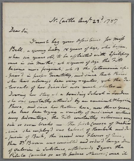 | Summary | Letter from William Ingham concerning the case of Miss Bell, 'afflicted with epilepsy'. |