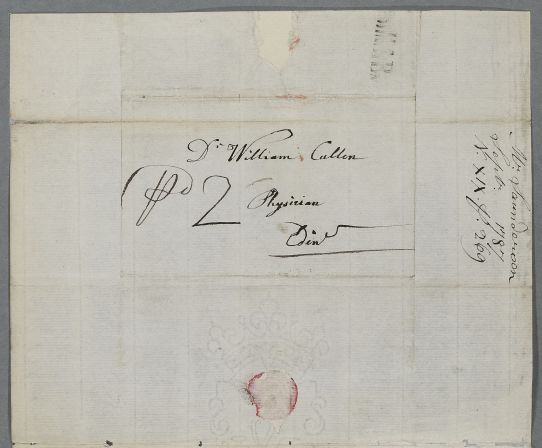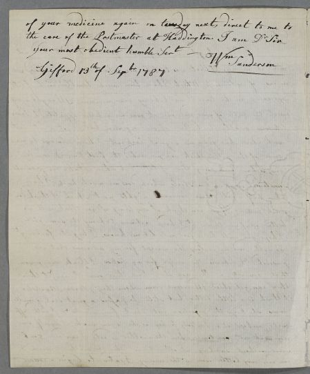 | Summary | Letter from William Sanderson, concerning his own case. Cullen had presumably visited him in Gifford; he mentions that 'you forgot one thing when you was here'. |