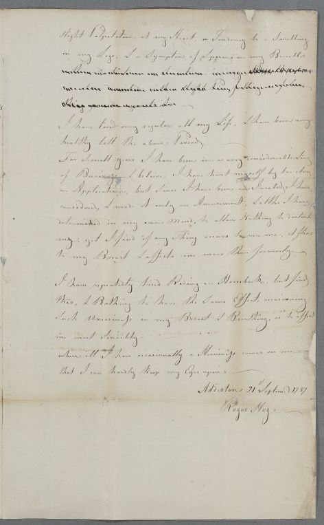 [ID:3225] From: Mr Roger Hog (junior) / To: Dr William Cullen (Professor Cullen) / Regarding: Mr Roger Hog (junior) (Patient) / 21 September 1787 / (Incoming)