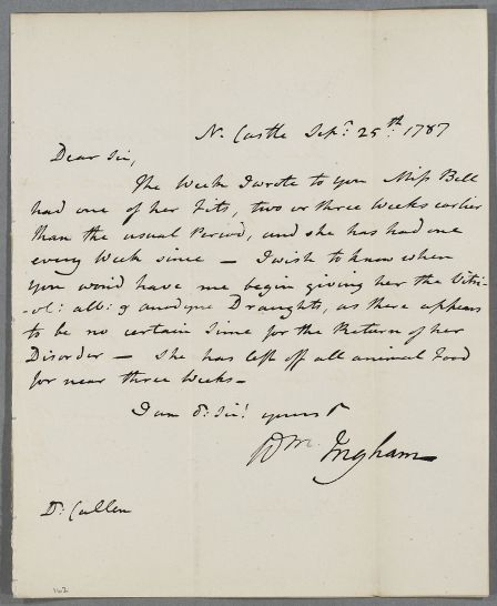 | Summary | Letter from William Ingham concerning the case of Miss Bell. |