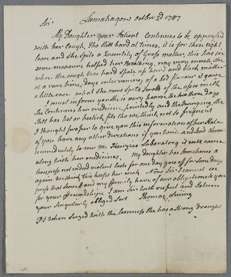 | Summary | Letter from Thomas Lining [Linning] concerning the case of his daughter. |