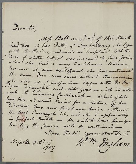 | Summary | Letter from William Ingham, concerning the case of Miss Bell. |