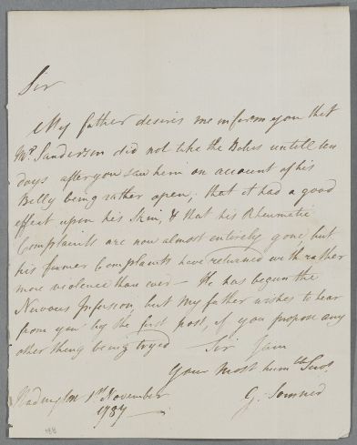 | Summary | Letter from G. Somner concerning Mr Sanderson. |
