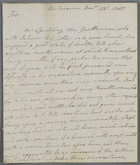 [ID:3267] From: Dr Richard Dixon (Dickson) / To: Dr William Cullen (Professor Cullen) / Regarding: Mr James Spalding (Spedding) (Patient) / 22 November 1787 / (Incoming)