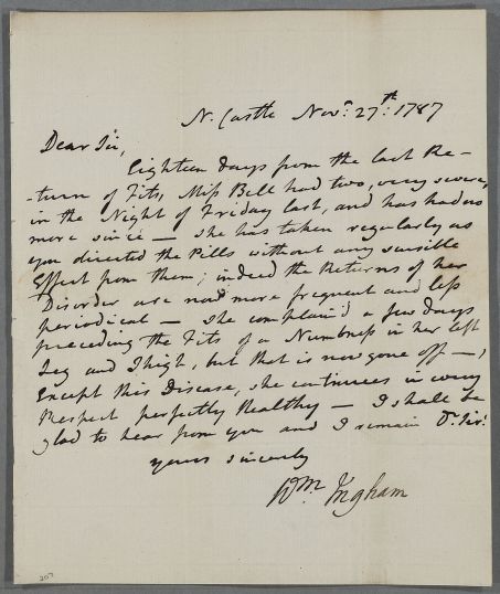 | Summary | Letter from William Ingham, concerning the case of Miss Bell. |