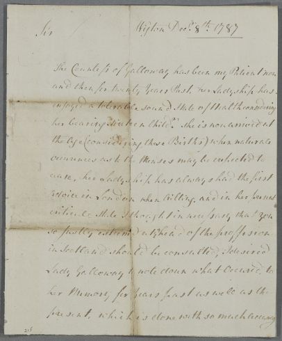 [ID:3277] From: Dr John Brown (Browne) / To: Dr William Cullen (Professor Cullen) / Regarding: Mrs Anne Dashwood (Countess of Galloway) (Patient) / 8 December 1787 / (Incoming)