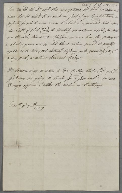 [ID:3278] Cover Letter and Case Note / Regarding: Mrs Anne Dashwood (Countess of Galloway) (Patient) / 10 December 1787 / (Incoming)