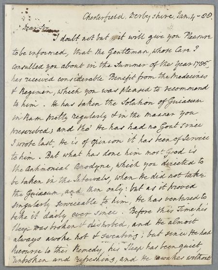 | Summary | Letter from Richard Milnes, concerning an unnamed patient (Mr Darrel). |