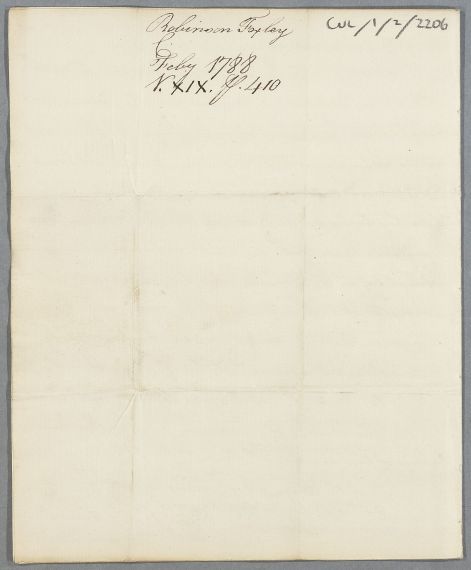 [ID:3309] From: Dr Robinson Foxley / To: Dr William Cullen (Professor Cullen) / Regarding: Reverend (Patient) / 13 February 1788 / (Incoming)
