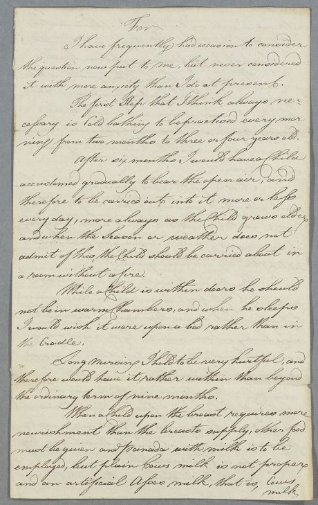 Case of a discussion over how to rear healthy children, probably written at the request of Lady Selkirk. |
