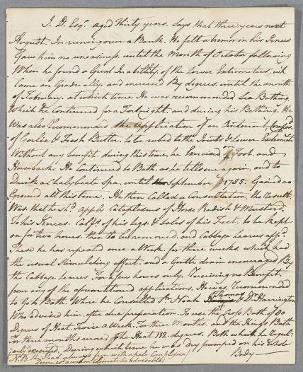 Case of 'J.D', a friend of Cullen's former pupil Dr James Tully. The patient has long-term problems with the joints in his legs. |