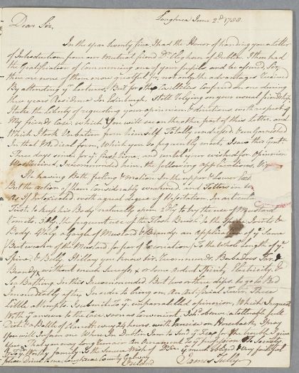 | Summary | Letter from James Tully, a former student of Cullen's, concerning the case of his friend J. D., aged 30 years. Addressed to Dr Cullen, Physician to His Majesty. |