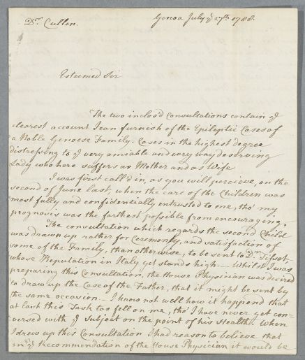 | Summary | Letter from William Batt concerning A. J. B. and his children, 'of a noble Genoese family', suffering from epilepsy. |