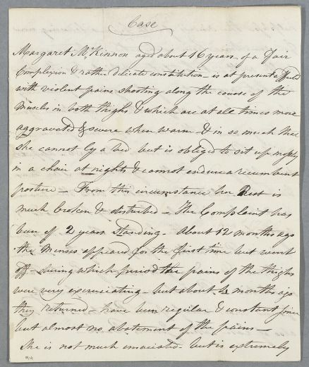 Case of Miss Margaret McKinnon whose disease is thought to be 'entirely rheumatic'. |