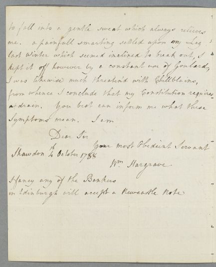 [ID:3400] From: Mr William Hargrave (Hardgrove) / To: Dr William Cullen (Professor Cullen) / Regarding: Mr William Hargrave (Hardgrove) (Patient) / 4 September 1788 / (Incoming)