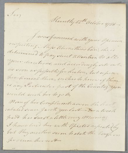 [ID:3402] From: Dr Alexander Gordon / To: Dr William Cullen (Professor Cullen) / Regarding: Miss Abernethie (Abernethy) (Patient) / 12 October 1788 / (Incoming)