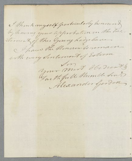 Letter from Alexander Gordon concerning the case of Miss Abernethie.