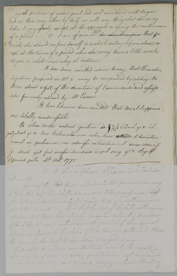[ID:341] From: Dr William Cullen (Professor Cullen) / To: (Miss Aiton's physician or surgeon) / Regarding: Miss Aiton (Patient) / 4 October 1775 / (Outgoing)