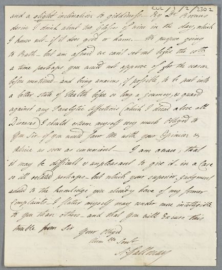 [ID:3412] From: Mrs Anne Dashwood (Countess of Galloway) / To: Dr William Cullen (Professor Cullen) / Regarding: Mrs Anne Dashwood (Countess of Galloway) (Patient) / 27 October 1788 / (Incoming)