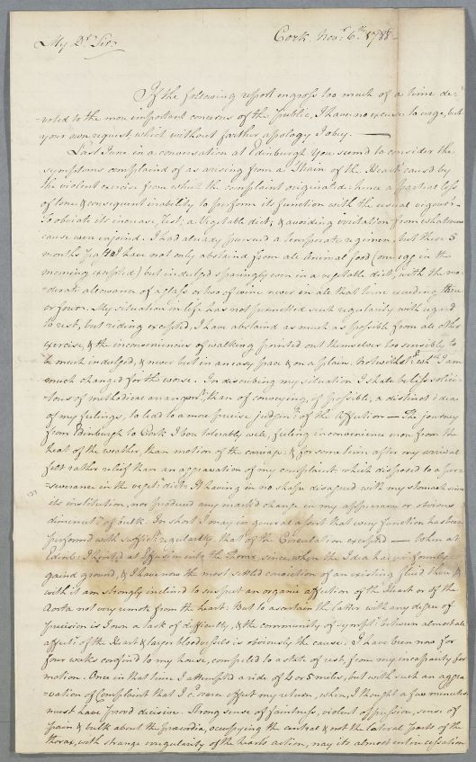 [ID:3422] From: Dr Boyle Coghlan / To: Dr William Cullen (Professor Cullen) / Regarding: Dr Boyle Coghlan (Patient) / 6 November 1788 / (Incoming)
