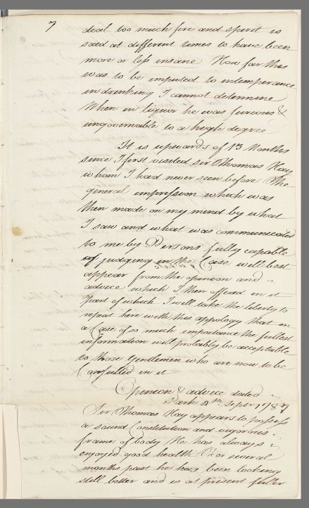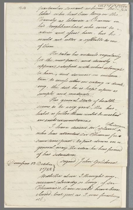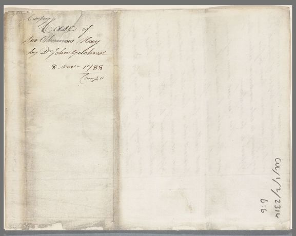 [ID:3425] Case Note / Regarding: Sir Thomas Hay (Patient) / 13 October 1788 / (Incoming)
