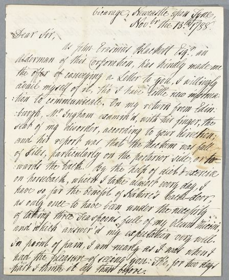 [ID:3430] From: Reverend John Ellison / To: Dr William Cullen (Professor Cullen) / Regarding: Reverend John Ellison (Patient) / 13 November 1788 / (Incoming)