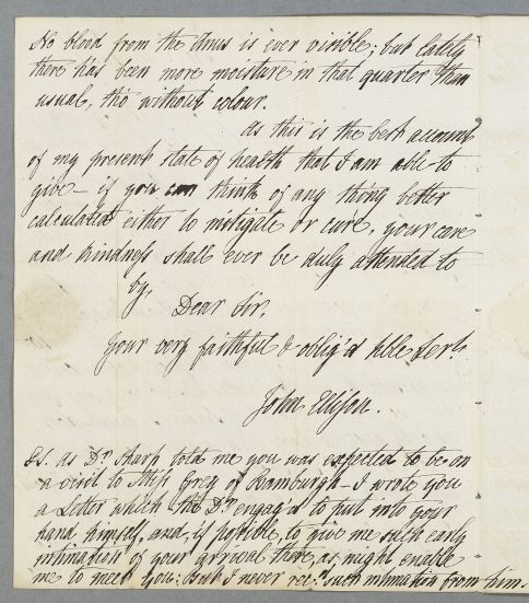 | Summary | Letter from John Ellison, concerning his own case. Mr Ingham examined him on his return from Edinburgh. He had also heard from Dr Sharp that he was due to visit Miss Grey of Bamburgh. The letter was delivered by John Erasmus Blackett. |