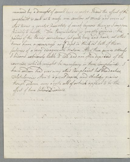 Case note by Rev. Mr. Wright, Minister of Trinity Gask (near Auchterarder), describing his own case history of bilious and gastric ailments, with perspiration of the hands. It may be missing a covering note from a physician.