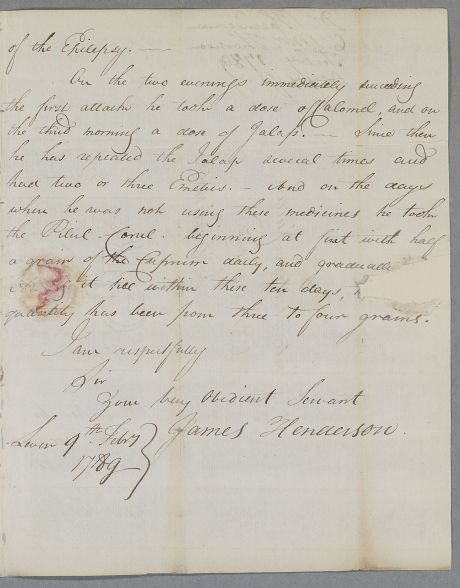 [ID:3459] From: Dr James Henderson / To: Dr William Cullen (Professor Cullen) / Regarding: Mr Adam Thomson (Patient) / 9 February 1789 / (Incoming)