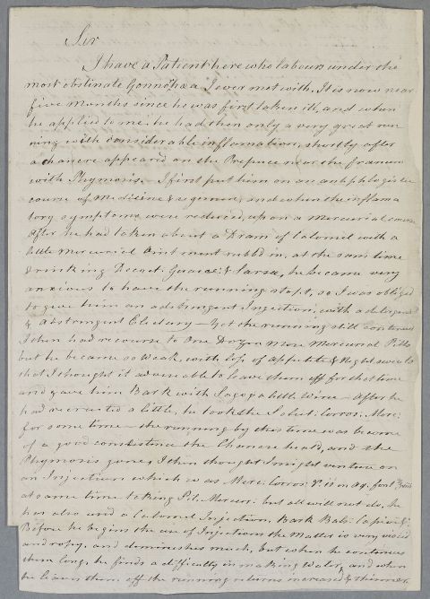 Case of an unnamed male patient reported to Henry Cullen as labouring 'under the most obstinate Gonorrhoea I ever met with'. |