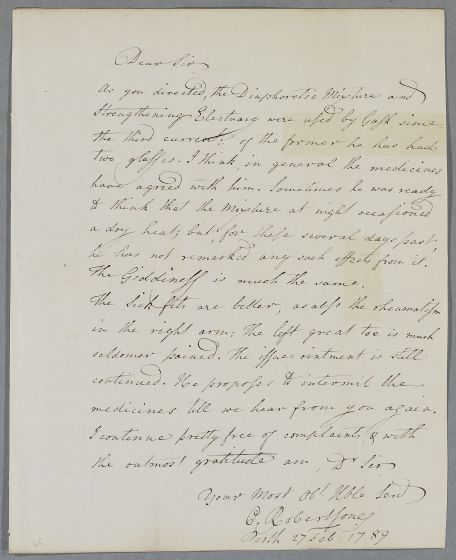 [ID:3471] From: Dr Colin Robertsone (Robertson) / To: Dr William Cullen (Professor Cullen) / Regarding: Mr Laurence Oliphant (of Gask) (Patient) / 27 February 1789 / (Incoming)