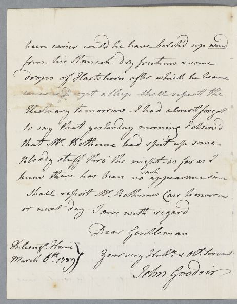 | Summary | Letter from John Goodsir, Kilconquhar House, concerning the case of Mr Bethune. |