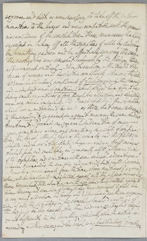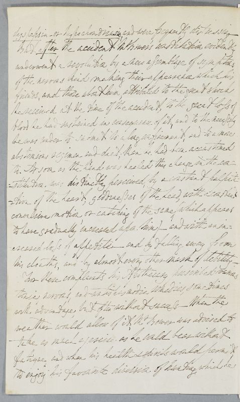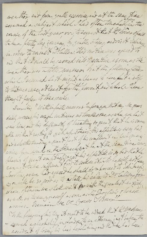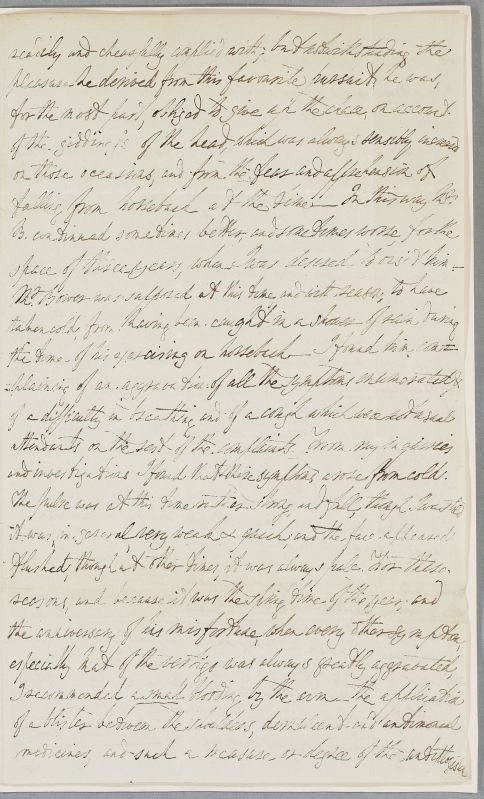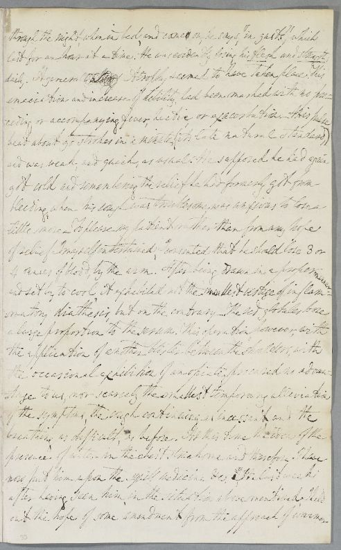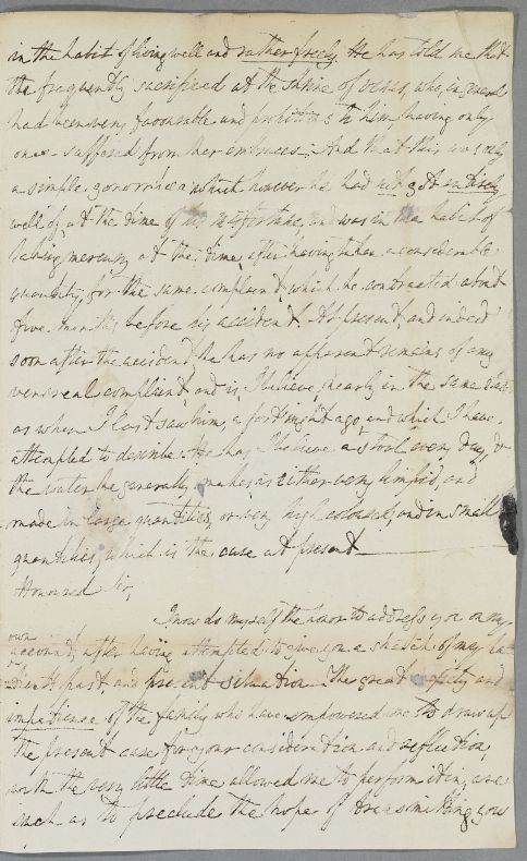 | Summary | Letter from Fotherley Pannell, giving the full case history of William Bower, aged about 27, son of Mr Bower of Scorton. Formerly an attorney's clerk in London, 'living well and rather freely', he 'frequently sacrificed at the shrine of Venus' and contracted gonorrhœa. He had his right hand amputated by Lambert of Newcastle, after a shooting accident c. 1782, and has been in declining health ever since. He is now extremely emaciated, with severe breathing difficulties and cough, as well as digestive symptoms. Pannell had advised him to travel to Edinburgh to consult Cullen, but he is getting worse, according to a letter from his father, received last night and here transcribed for Cullen. |