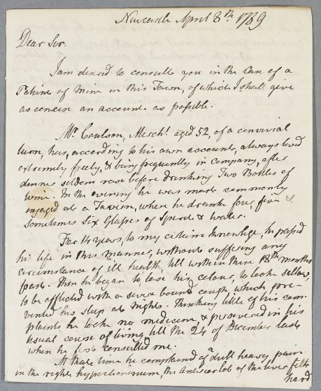 [ID:3494] From: Dr John Clark (Clerke, Clarke) / To: Dr William Cullen (Professor Cullen) / Regarding: Mr Coulson (Patient) / 8 April 1789 / (Incoming)