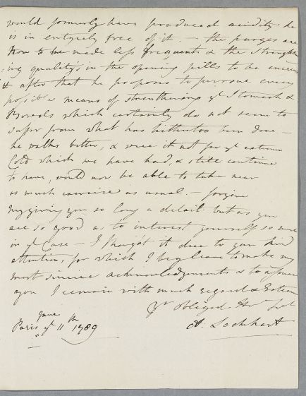 [ID:3530] From: Countess Annabella Lockhart (Craufurd) / To: Dr William Cullen (Professor Cullen) / Regarding: Count James Lockhart (Count Lockhart, Count Lockhart-Wischeart) (Patient) / 11 June 1789 / (Incoming)