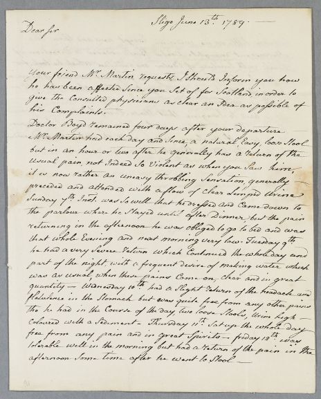 [ID:3535] From: Dr Bernard McParlan / To: Mr Andrew Todd (in Sligo) / Regarding: Mr John Martin (Patient) / 13 June 1789 / (Incoming)