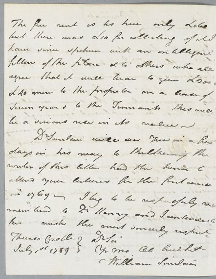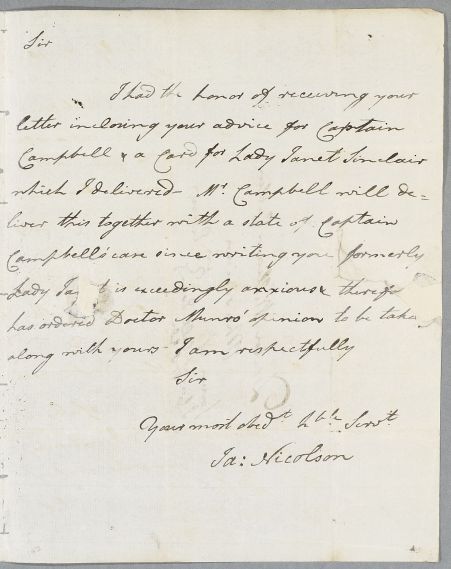 | Summary | Letter from William Sinclair, Thurso Castle, concerning the case of Captain Campbell. Includes a note from James Nicolson. Sinclair was a student of Cullen's in 1769. |